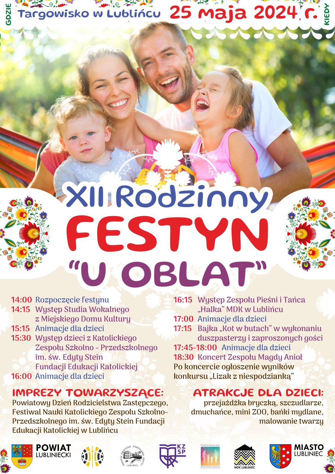Zapraszamy na obchody Powiatowego Dnia Rodzicielstwa Zastępczego, które odbywać się będą podczas Festynu "U Oblat" w dniu 25 maja 2024 r.