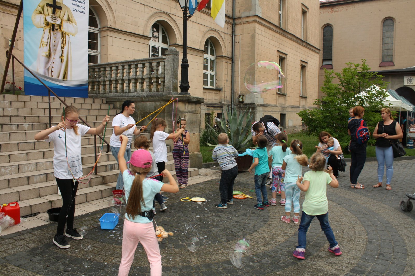 Festyn był okazją do uhonorowania codziennej pracy i ofiarności rodziców zastępczych. Starosta Joachim Smyła podziękował rodzicom za zaangażowanie w pracę i rozwój dzieci, które mają pod opieką. Powiedział też, że rodzicielstwo zastępcze jest bardzo ważną i mającą wielki wpływ na wychowanie młodych ludzi formą pomocy społecznej. Były też serdeczne życzenia dla wszystkich dzieci z okazji ich święta. Pogoda dopisała, zabawa potrwała więc do wieczora. Uroczystość rozpoczęła msza św., odprawiona w intencji rodzin zastępczych. Na przybyłych gości czekały występy artystyczne uczniów z Zespołu Szkół im. św. Edyty Stein oraz dzieci ze scholii parafialnej. Można było zobaczyć m. in. animacje dla dzieci, prowadzone przez klaunów Rico i Rupherta oraz inscenizację pt. „Pchła Szachrajka” w wykonaniu duszpasterzy i zaproszonych gości. Imprezie towarzyszył szereg atrakcji, m. in. kolorowy salon kosmetyczny, loteria prowadzona przez Caritas, zwiedzanie radiowozu Policji i wozu bojowego Straży Pożarnej, prezentacja twórczości uczestników Warsztatów Terapii Zajęciowej w Lublińcu oraz zajęcia artystyczne. Dla najmłodszych wielbicieli zabaw na świeżym powietrzu przygotowano dmuchane zjeżdżalnie, plac zabaw oraz kule wodne.