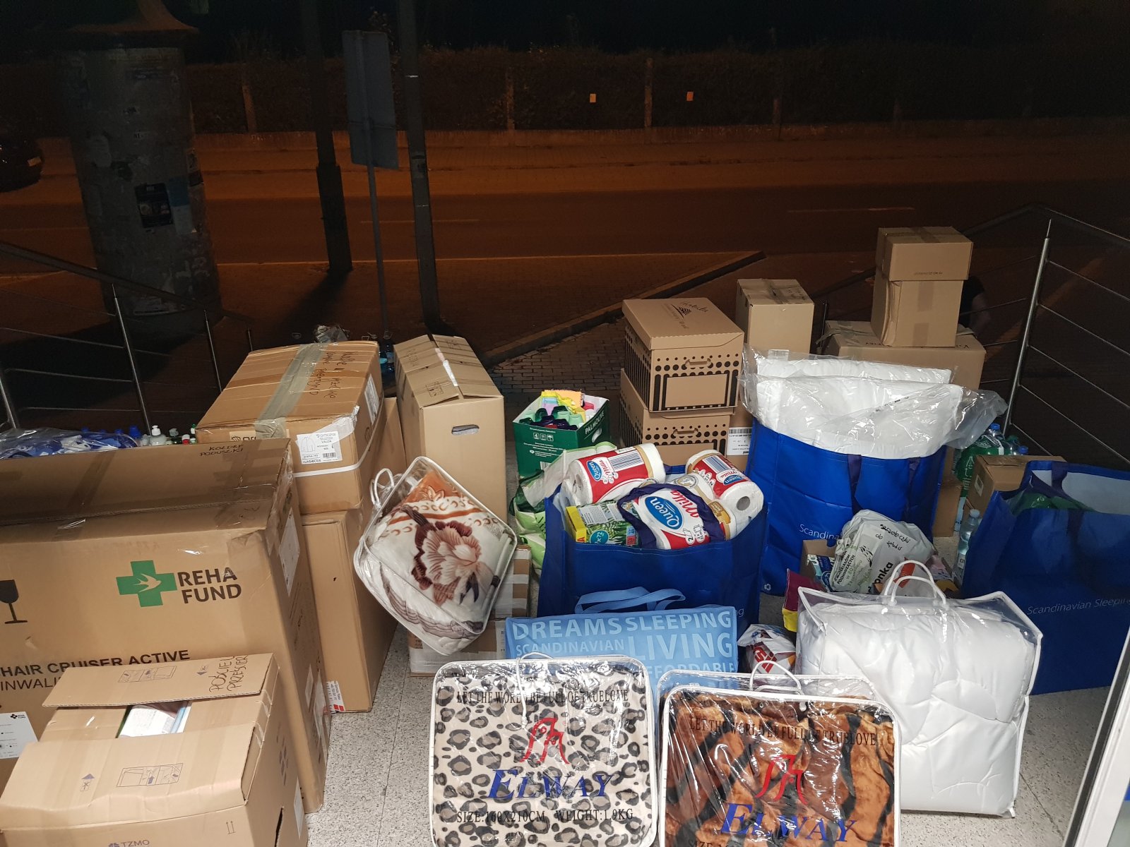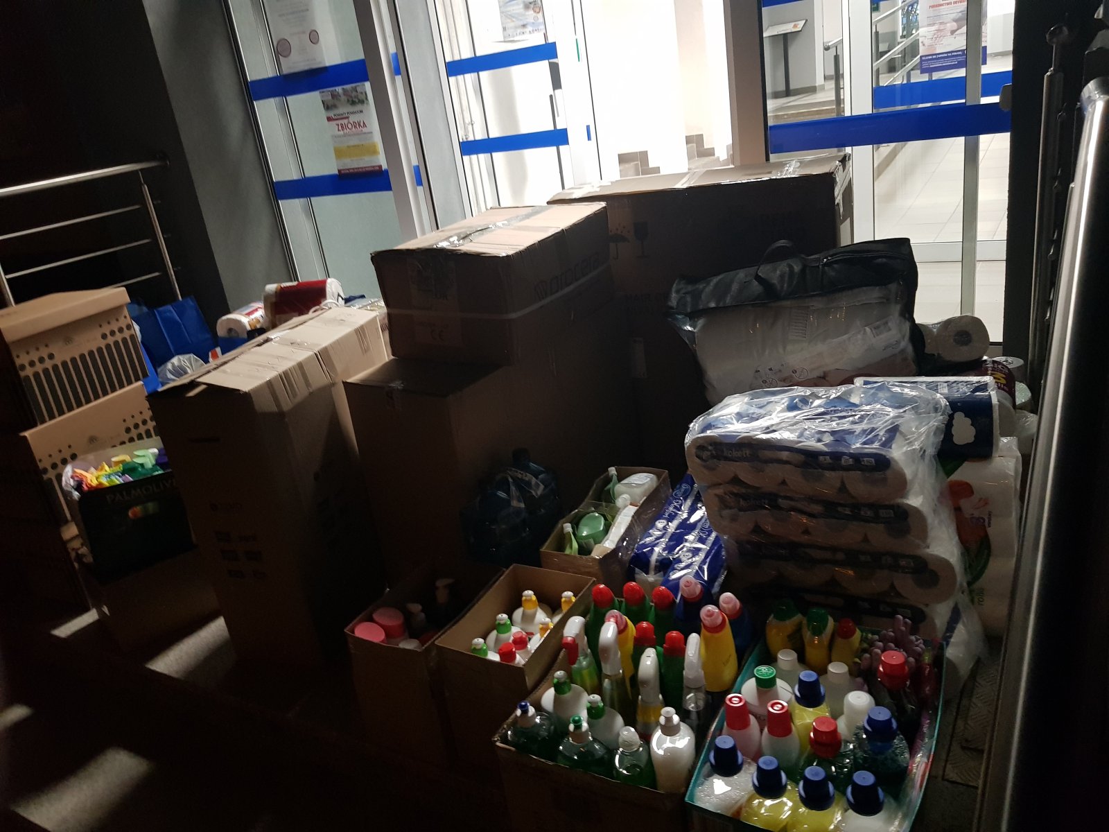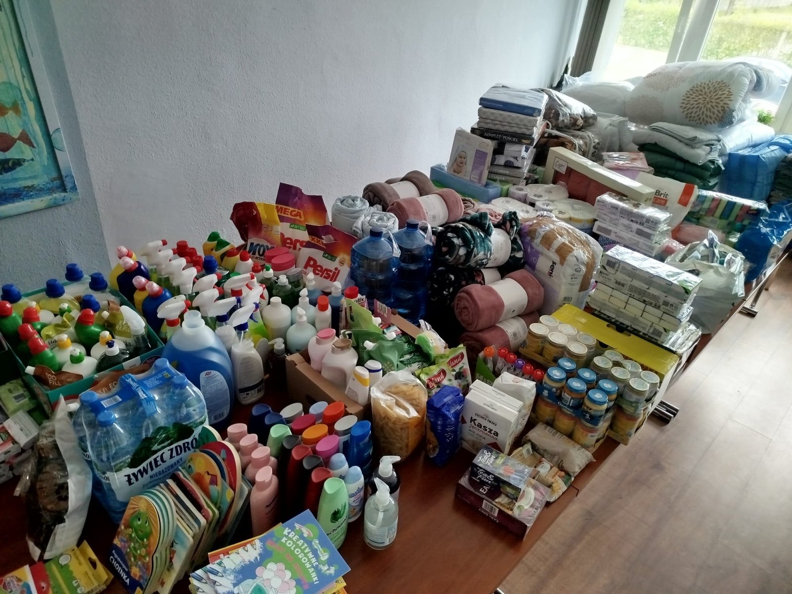 Wspólnymi siłami udało się zebrać mnóstwo niezbędnych środków pierwszej potrzeby, takich jak: komplety pościeli, poduszki, kołdry, ręczniki, środki czystości, środki higieny osobistej.