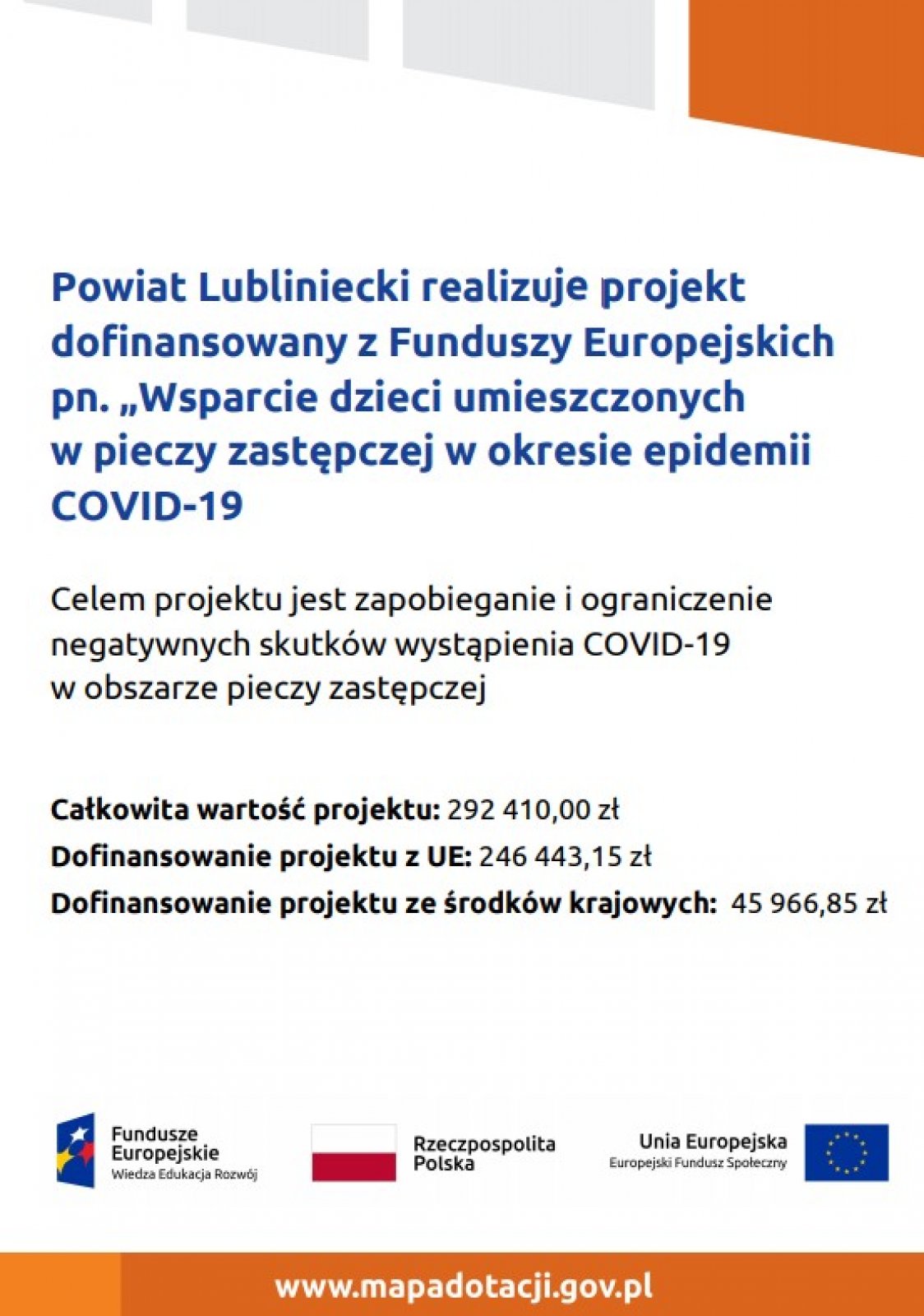 realizuje projekt "Wsparcie dzieci umieszczonych w pieczy zastępczej w okresie epidemii COVID-19"
