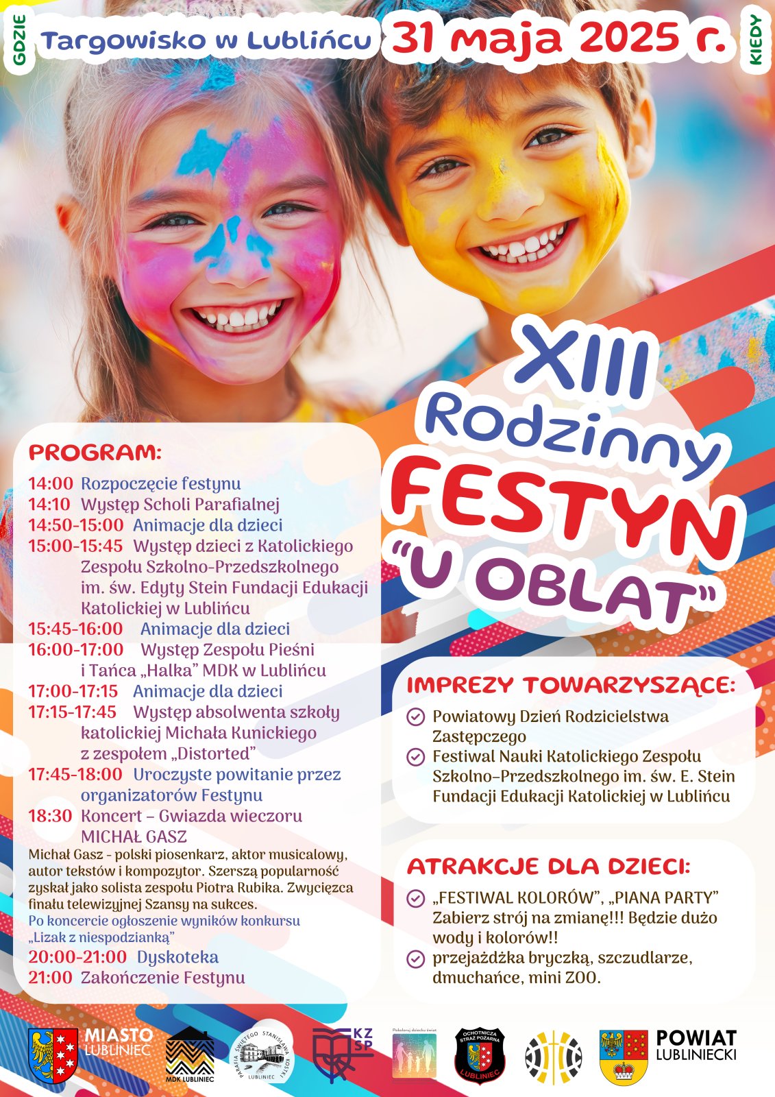 Zapraszamy na obchody Powiatowego Dnia Rodzicielstwa Zastępczego, które odbywać się będą podczas Festynu Rodzinnego "U Oblat" w dniu 31 maja 2025 r.